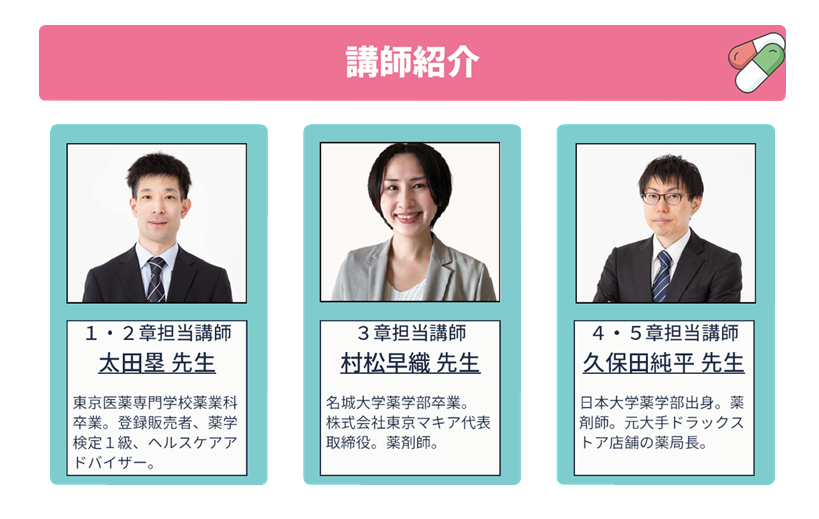 「短期間で効率よく合格したい」「自分のペースで学びたい」そんな方におすすめの講座です。登録販売者資格の取得を目指す第一歩として、ぜひご活用ください。